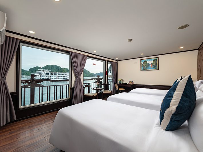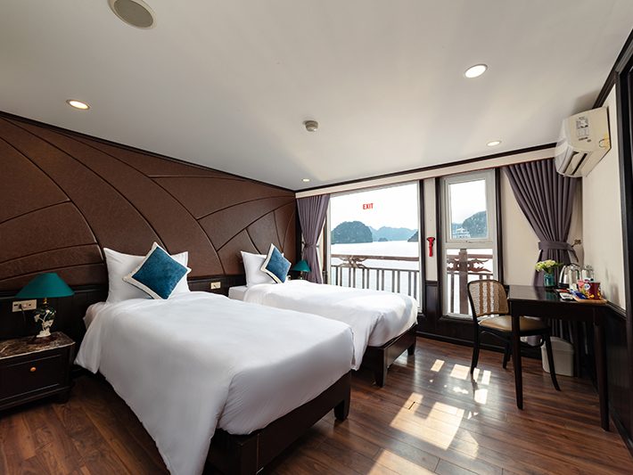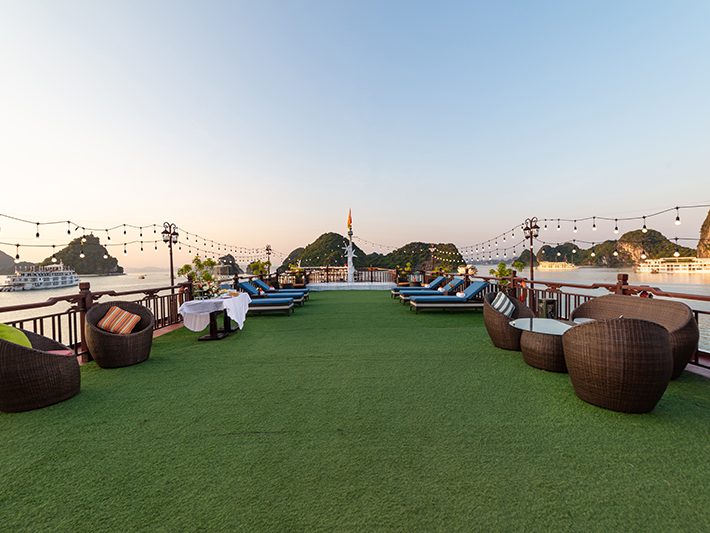 - Receive a cold towel and welcome drink. Check into your luxurious cabin as Amanda Cruise sets sail through the limestone wonders of Ha Long Bay.