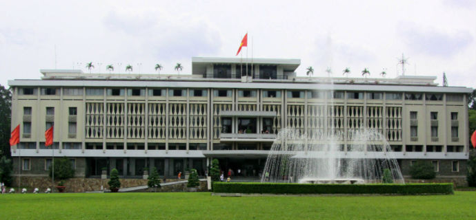 A historic site where the Vietnam War ended on April 30, 1975, when a North Vietnamese tank crashed through its gate. Formerly the residence of the President of South Vietnam.
